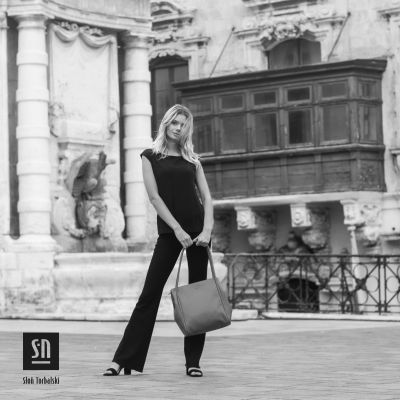 Black Leather Handbag - Women"s Shopper Bag JULIET