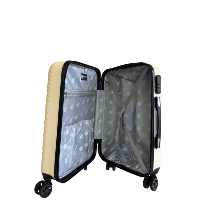 The Helena cabin suitcase features a zipper closure, with an additional built-in combination lock for extra security, ensuring your belongings stay safe from unauthorized access. With a height of 56 cm including wheels, it fits perfectly as a carry-on bag.