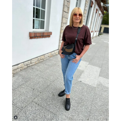Half-moon leather bag "Mała Mi" with a belt bag function.