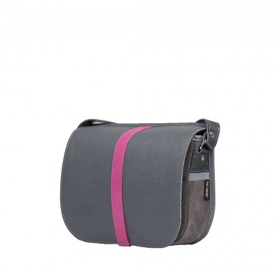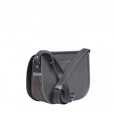 Leather shoulder bag. Main body make of suede leather in grey colour.