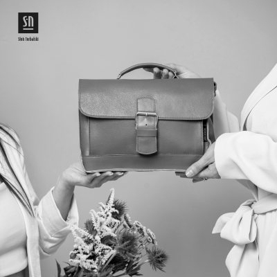 Main body: 100% natural leather. Inside: key leash; zipped pocket; pocket for mobile phone; pocket for pens; lining. Handy pocket under flap.