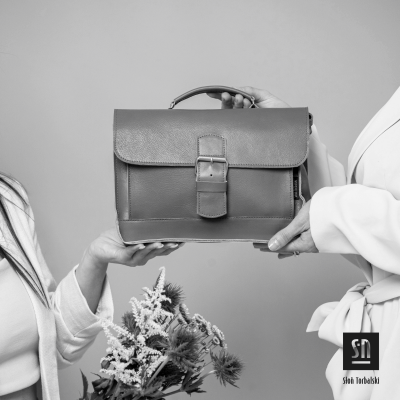 Main body: 100% natural leather. Inside: key leash; zipped pocket; pocket for mobile phone; pocket for pens; lining. Handy pocket under flap.