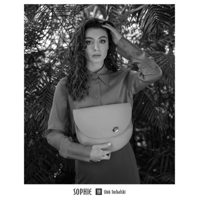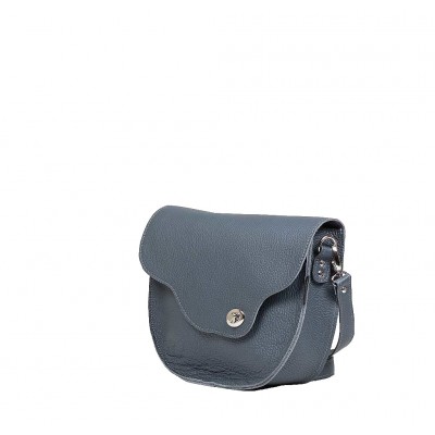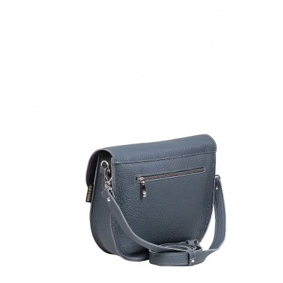 Main body grain leather in blue color. Flap grain leather in blue colour. In the back safe zipped pocked.. Inside: leather strengthened zipped pocket and ticket pocket; key leash.