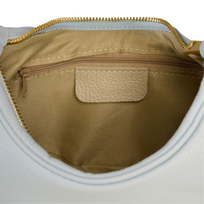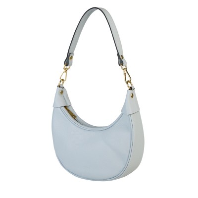 The Aria model is a medium-sized women’s shoulder bag with a clean, crescent-shaped silhouette and no traditional flap. Piped side seams ensure the bag maintains its structure and give it a polished, refined finish.