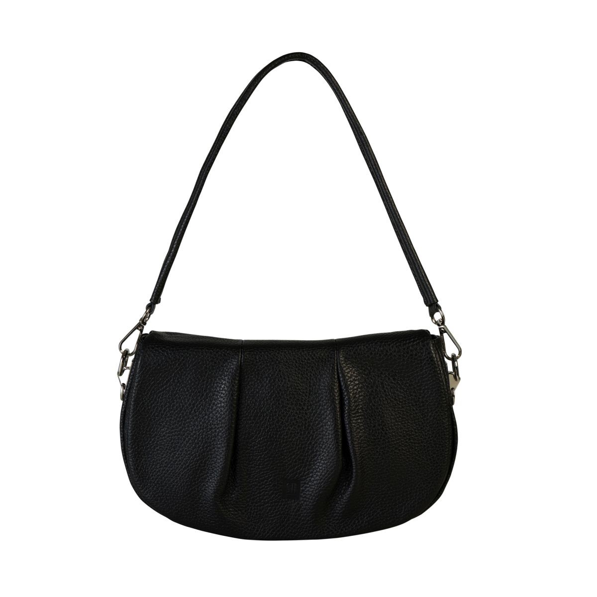 The bag comes with two detachable straps – a shorter handle for hand-carrying and a longer, adjustable strap (up to 110 cm) for wearing over the shoulder or crossbody. Two sturdy silver-tone metal rings on the sides allow for both straps to be attached at once.