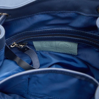 Crafted from natural leather in a deep navy shade, the backpack is spacious and equipped with adjustable straps and practical pockets, making it perfect for both work and daily outings.