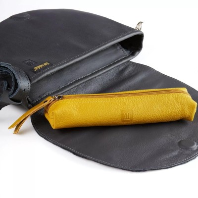The large yellow shopper bag and mustard-colored leather pencil case create a cohesive and stylish set for women who value both functionality and elegance. The handbag is crafted from high-quality genuine leather. Perfect for everyday use – whether for work, university, or shopping – it offers ample space, comfort, and a beautiful design. The leather pencil case helps keep small accessories organized, with its durable construction and subtle logo ensuring it will last for years. This ready-made set is not only a stylish combination but also an ideal gift – practical, long-lasting, and delightfully designed.
