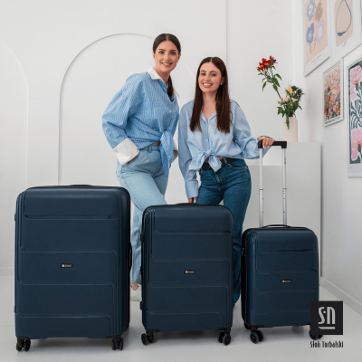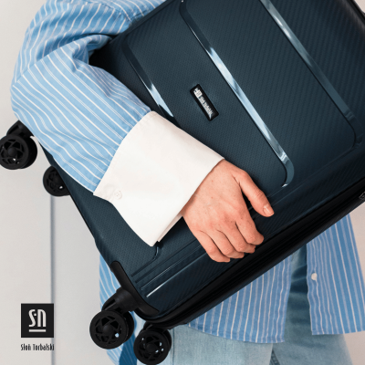 The navy blue expandable cabin suitcase is a great choice for frequent air travelers. It is made of durable and damage-resistant polypropylene material, which guarantees the safety of your luggage. Thanks to the expandable sides, the cabin suitcase has a larger capacity than standard models, allowing you to take more things with you.