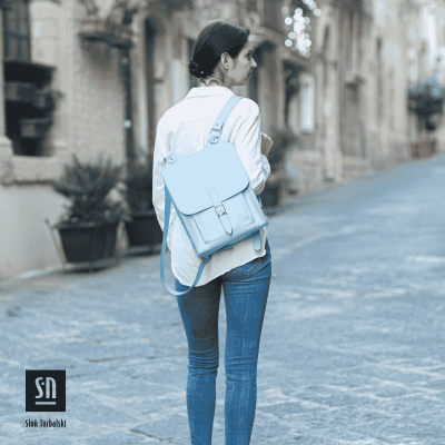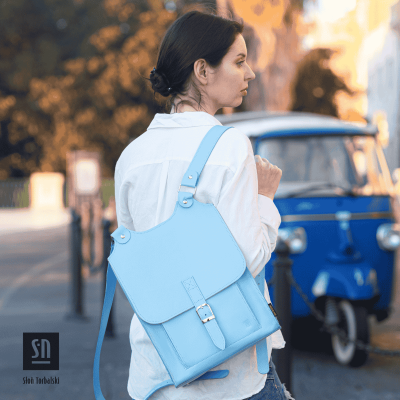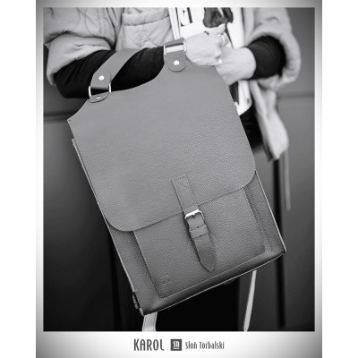 The Karol leather blue backpack is a model that has a richly equipped interior. Under the flap fastened with a single briefcase latch there are: - two main compartments divided by an additional long pocket fastened with a zipper - a pocket fastened with a zipper - a key lanyard - three pen holders - a pocket for a monthly ticket/card - a long pocket for a laptop - dimensions of the model: 43 cm x 29 cm x 14 cm. The leather backpack holds A4 format and many other small items that can be accommodated. The straps on the back wall are adjustable, which allows you to adjust the position of the leather backpack. The model can be unisex depending on the color. The dimensions allow for a wide range of use for work, school or college.