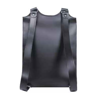 A natural leather backpack in black with a functional interior. The base of the backpack is made from stiff, smooth black leather. The design is complemented by a flap with a buckle, under which there is a clasp — a snap fastener (tik-tak type). The backpack straps are adjustable with a buckle. Under the flap, you’ll find a leather pocket. The main compartment of the backpack is secured with a zipper. This leather backpack is very spacious, and thanks to the compartments inside, you’ll easily find items hidden inside. The backpack dimensions are 43x29x14cm — it fits A4 format.