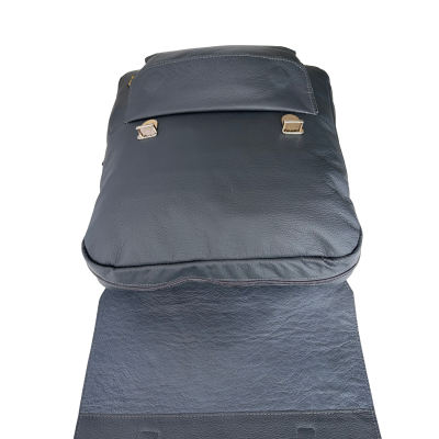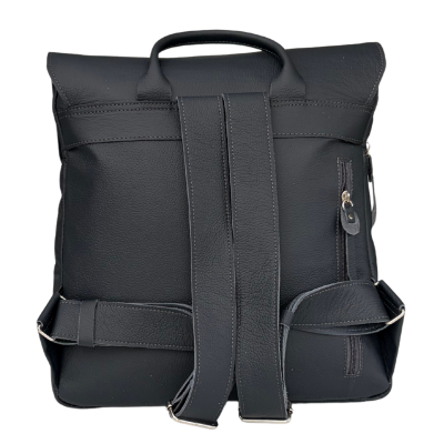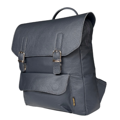 This graphite black leather backpack, crafted from high-quality genuine full-grain leather, is an elegant and timeless model perfect for work and everyday use. Its minimalist silhouette with a flap secured by two stylish buckles highlights its classic character.