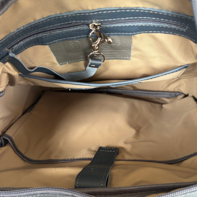 The backpack features a spacious main compartment with a zipper closure, fitting A4-sized documents and a laptop. An additional front pocket and a secure zip pocket at the back make organization easy and practical. Adjustable shoulder straps and a sturdy top handle ensure comfortable carrying, while the reinforced structure helps maintain its sleek shape even when fully loaded.