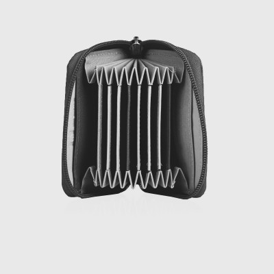 Stylish leather business card holder in shades of blue. They are made of high-quality natural leather. The case closes with a zipper and is a practical, everyday accessory. When opened, you will find a lot of compartments of the business card in the form of an accordion, which makes the use of this leather case extremely convenient. The small size allows you to store it even in a tiny bag or sachet. Features: - 11 business card slots - lockable with a zipper - dimensions 10 x 8 x 3 cm