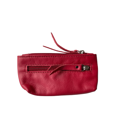 A red leather key case measuring 15x8x2 cm is the perfect product for storing keys. Inside, it features a fixed key leash (17 cm long) attached to a leather tongue. On the outside, there is a zippered pocket. Made from carefully selected genuine leather, it offers high quality, durability, and long-lasting use.