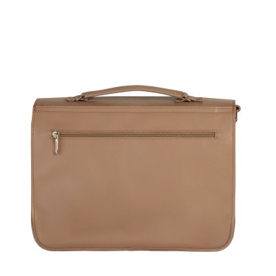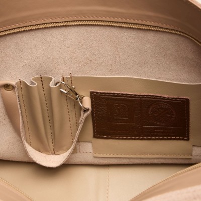 DALIA – Beige Vintage-Style Crossbody Bag Dalia is a refined women’s crossbody bag crafted from smooth, high-quality natural leather in a classic beige tone. Its soft color and vintage-inspired design make it the perfect accessory for everyday use—whether you’re heading to work, university, or a casual outing. The bag features a short leather handle for carrying by hand, as well as a long, adjustable strap that allows you to wear it comfortably over the shoulder or across the body. The main compartment, secured with a top zipper, is spacious enough to hold A4-sized documents. The interior is designed with functionality in mind and includes: a small slip pocket, a key leash, a pen holder. On the front, there’s a large exterior pocket, while the back features a zippered pocket—ideal for keeping your phone or wallet secure. The entire bag is additionally protected by a flap, which fastens with two vintage-style metal briefcase clasps mounted on buckle straps. Dimensions: 32 x 23.5 x 10 cm Thanks to its balanced proportions and thoughtful design, Dalia is an excellent choice for those who value both elegance and practicality. Perfect for work, school, university, or everyday wear, this beige bag brings timeless style to any outfit.