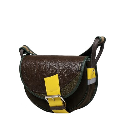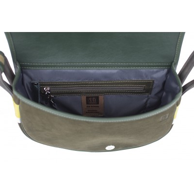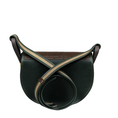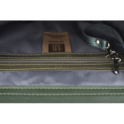 Base of the bag is made of natural leather in a brown-green colour.