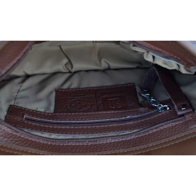 The Mouse is a timeless brown handbag with a decorative flap that combines minimalist elegance with practicality. Crafted from full-grain leather, the front of the bag features a small, practical zippered pocket and an elegant pin closure, adding a sophisticated touch.