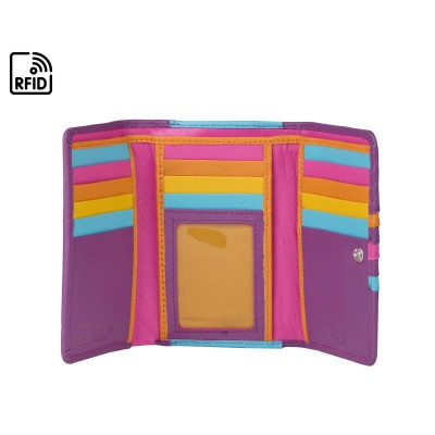 Inside, the wallet delights with a vibrant explosion of color — shades of purple, pink, orange, blue, and yellow create a fresh, joyful look that turns this accessory into both a practical essential and a stylish statement piece.