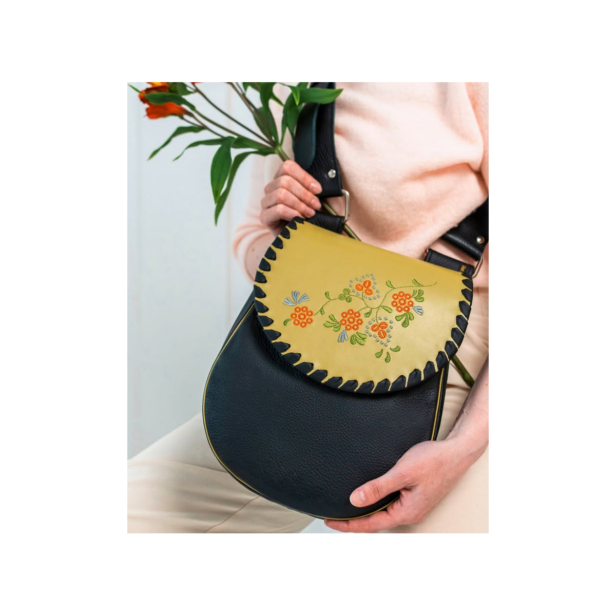Reduced price leather handbag and shoulder bag Pawie Pióro black and blue PLN413.10 PLN459.00 -10% Add to cart