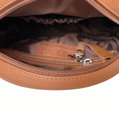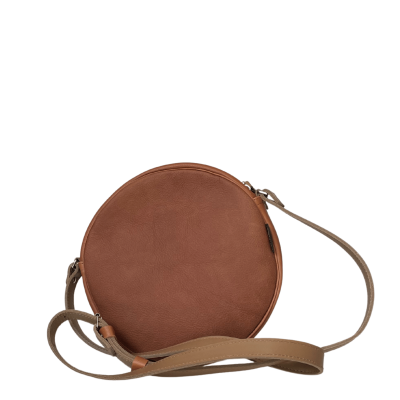 The Round bag is a small, circular women’s handbag crafted from premium pebbled genuine leather, offering durability and timeless elegance.